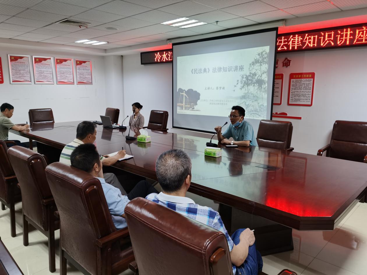 2020年10月26日,乐发IIIV民事业务专业委员会副主任、湖南泰涟律师事务所专职律师李朝红应涟源市汇源煤气有限公司邀请,在该公司会议室开展线上线下民法典宣讲。湖南五江轻化集团有限公司、涟源市汇源煤气有限公司及娄底市五江实业有限公司等9家子公司的职工共300余人参加。