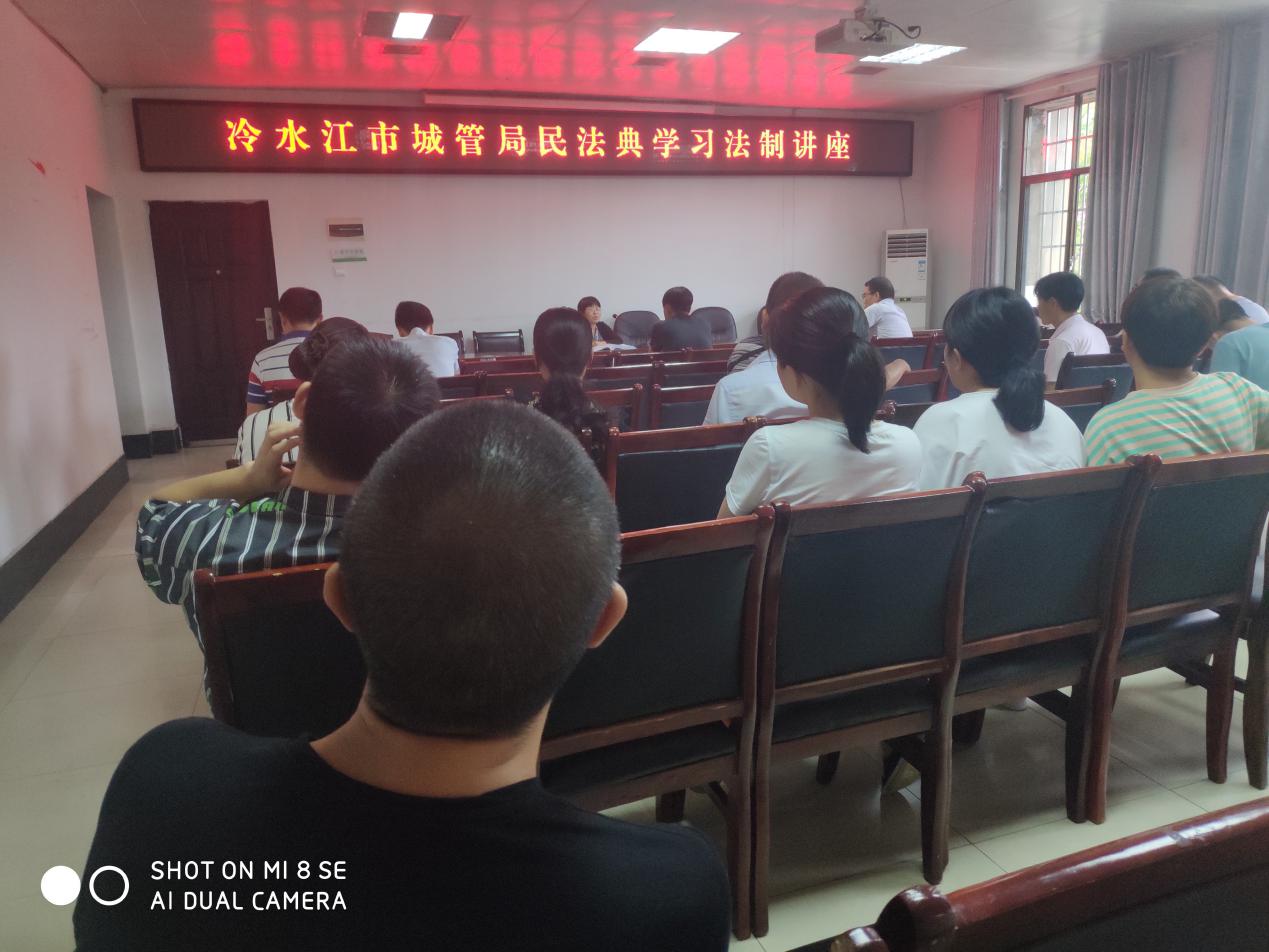 2020年10月20日,湖南湘都律师事务所专职律师杨平玲应冷水江市城市和综合执法局邀请,在该局会议室开展民法典宣讲,该局干部职工70余人参加。