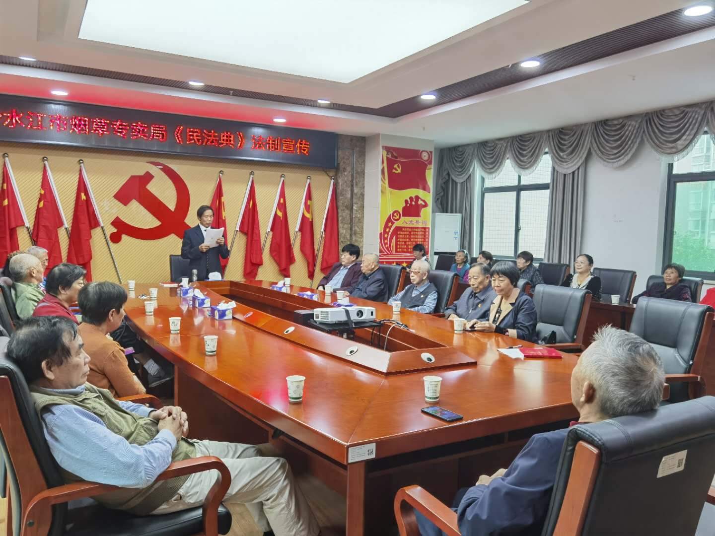 2020年10月20日,湖南湘都律师事务所专职律师刘孟荣应冷水江市烟草专卖局邀请,在该局会议室开展民法典宣讲,该局干部职工60余人参加。