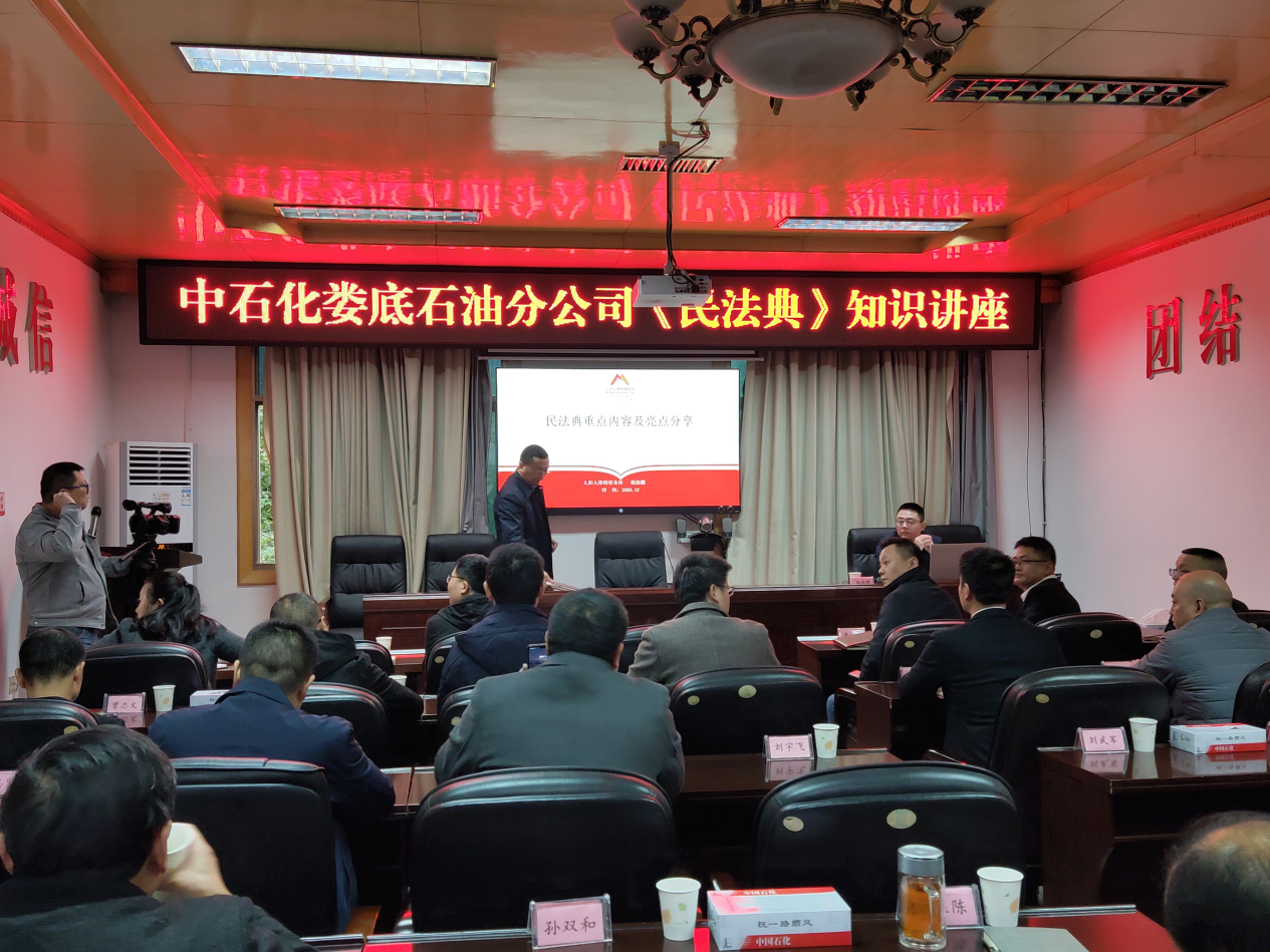 2020年12月1日,乐发IIIV非诉委主任、湖南人和人(娄底)律师事务所专职律师姚继鹏应中国石化销售股份有限公司湖南娄底分公司邀请,在该公司会议室开展线上线下民法典宣讲,该公司各部门负责人及员工150余人参加。