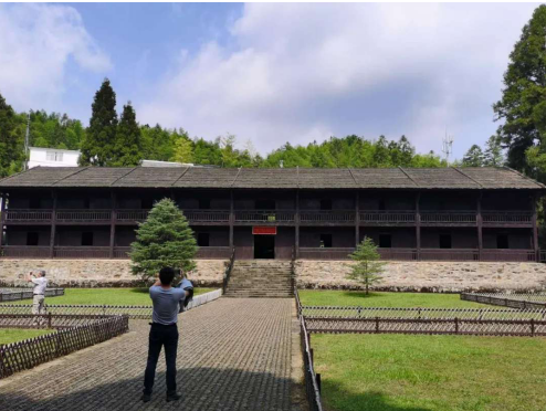 (井冈山合影) 井冈山革命根据地是土地革命战争时期,中国共产党在湖南、江西两省边界罗霄山脉中段创建的第一个农村革命根据地,成为中国革命走上建立农村根据地,以农村包围城市,最后夺取全国胜利道路的开端。1927年10月3日,毛泽东决定率领秋收起义军余部向井冈山进军,从此在井冈山坚持斗争历时两年四个月。为此,毛泽东专门创作了《西江月·井冈山》《水调歌头·重上井冈山》和《念奴娇·井冈山》。 黄洋界哨口是井冈山红色教育最具代表性的革命遗迹,位于井冈山的西北面,海拔1343米,是井冈山军事根据地五大哨口之一。