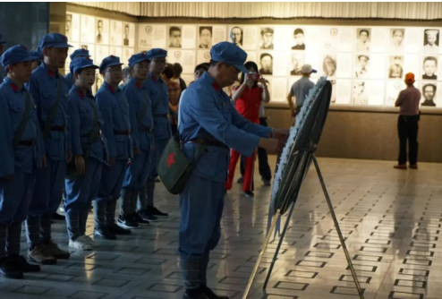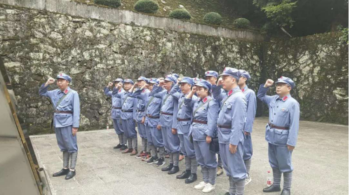 (小井红军医院旧址) 9月6日,全体学员瞻仰井冈山北山烈士陵园并敬献花圈,在井冈山北山烈士陵园纪念堂前重温入党誓词。