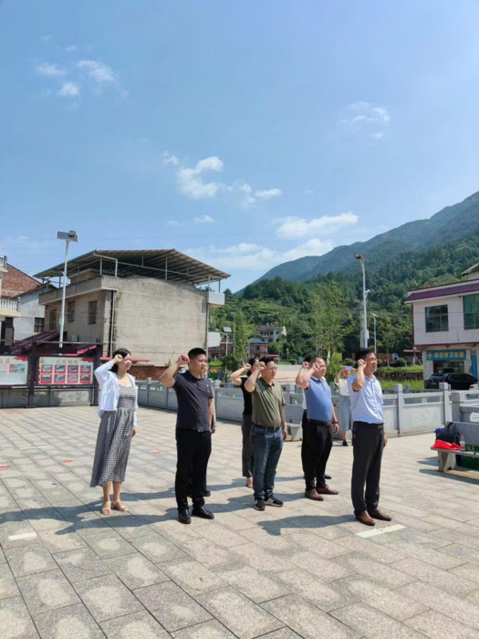 参观故居后,在支部书记袁文彬的带领下,全体党员一起高举右手,面对鲜红的党旗,重温了入党誓词。