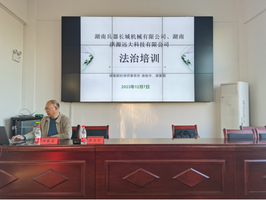 12月7日,结合宪法宣传周主题活动,湖南顺时律师事务所为湖南兵器长城有限公司和湖南洪源远大科技有限公司同步开展法治培训。两家公司中层以上管理人员30余人参加。